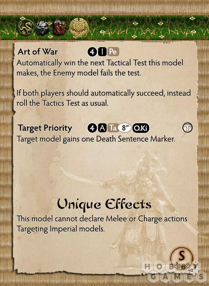General Wu Shuo, ветеран не только военных конфликтов, скрывает свои истинные чувства, поскольку он всего лишь вассал Emperor Song, знающий, что и когда говорить. Его восхождение на вершину не было стремительным, совсем наоборот – это был тернистый путь. В течение долгого времени он делал аккуратные маленькие шаги, и его терпение обеспечило ему поддержку как при дворе, так и среди тех, кем он командует. Wu Shuo часто вспоминает более простые времена, когда на нём было меньше ответственности. Например, когда он сражался бок о бок с семью самураями у Tiger's Gate против, казалось, тысячной армии, а на рассвете следующего дня одержал победу. Затем был случай, когда он убил знаменитого Leopard of Makar. Но сейчас император приказывает ему отправиться на Восток, в Jwar, где он надеется встретить старого друга и союзника, General Mako, который рассказывает о драконах и многом другом.