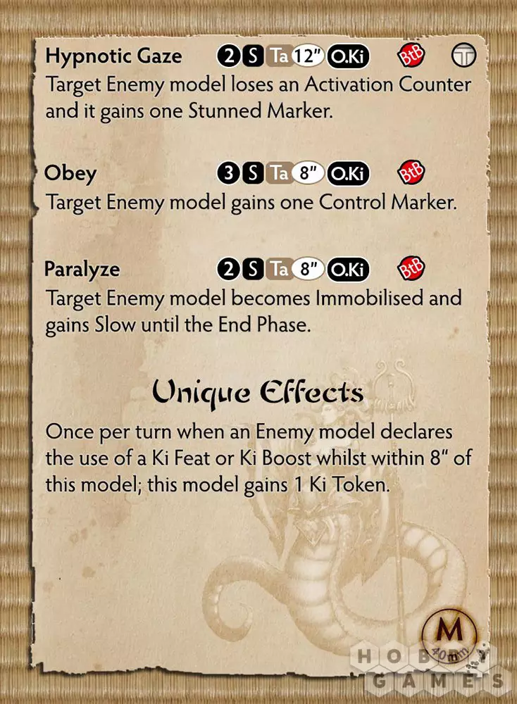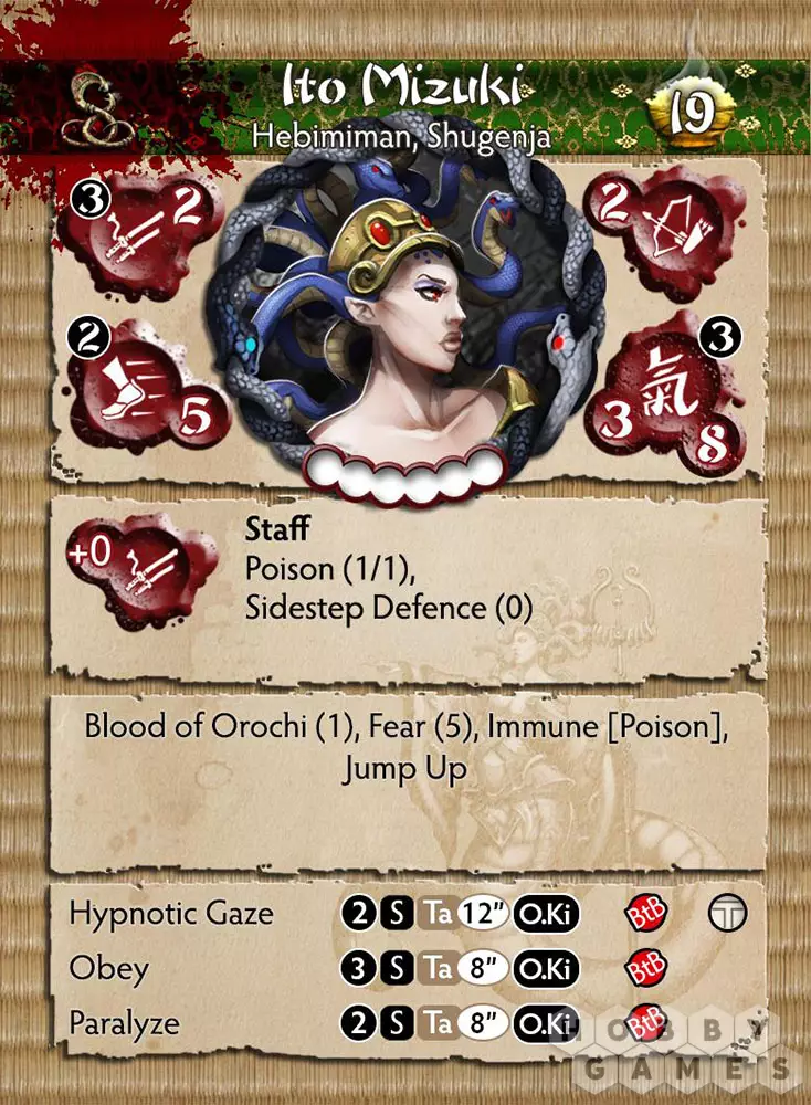 Еще одна дочь клана Ito поддалась искушению получить благословение Orochi. Когда-то она была прекрасной наследницей клана, и многие самураи-лорды были заинтересованы в том, чтобы добиться её руки для своего сына. Но всё это было до видений, которые и привели Mizuki к её единственному и неповторимому мужу – Orochi. Благословение пробудило в ней глубокую силу и способность одаривать единоверцев, выполняя волю Orochi. Её взгляд способен склонить на свою сторону даже самых решительных людей или заставить их застыть на месте до тех пор, пока они не смогут послужить целям этой смертоносной и прекрасной Shugenja Ito.