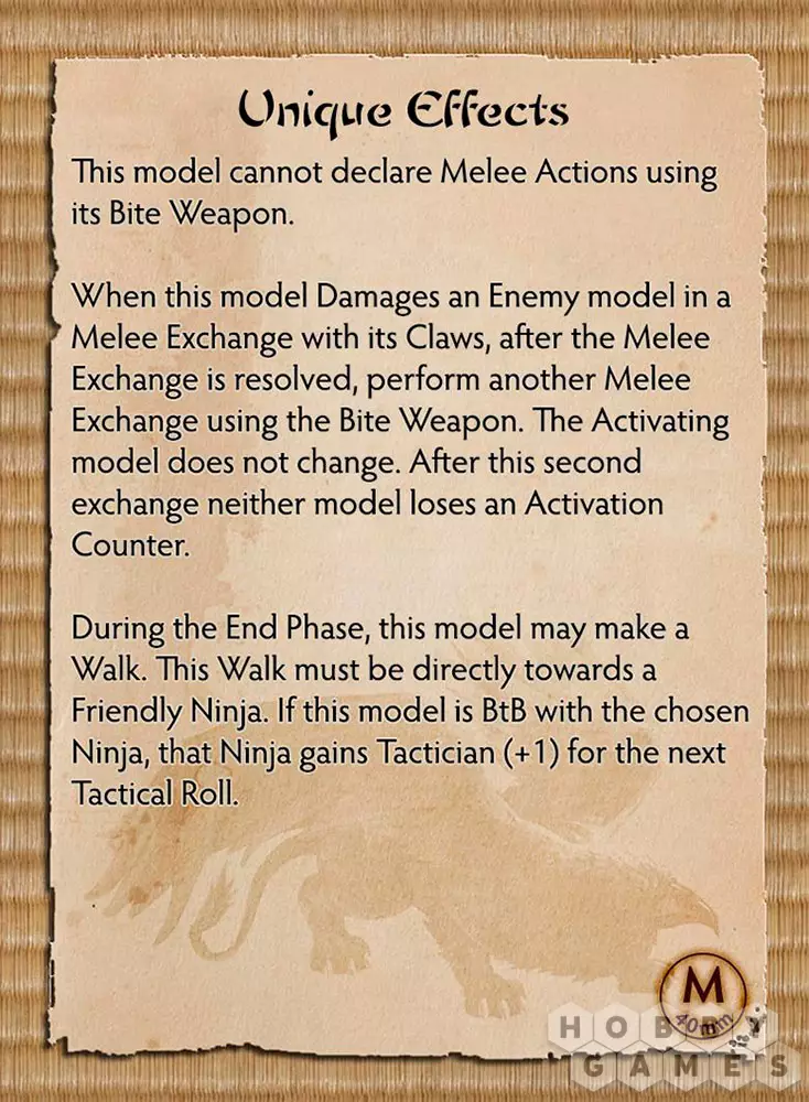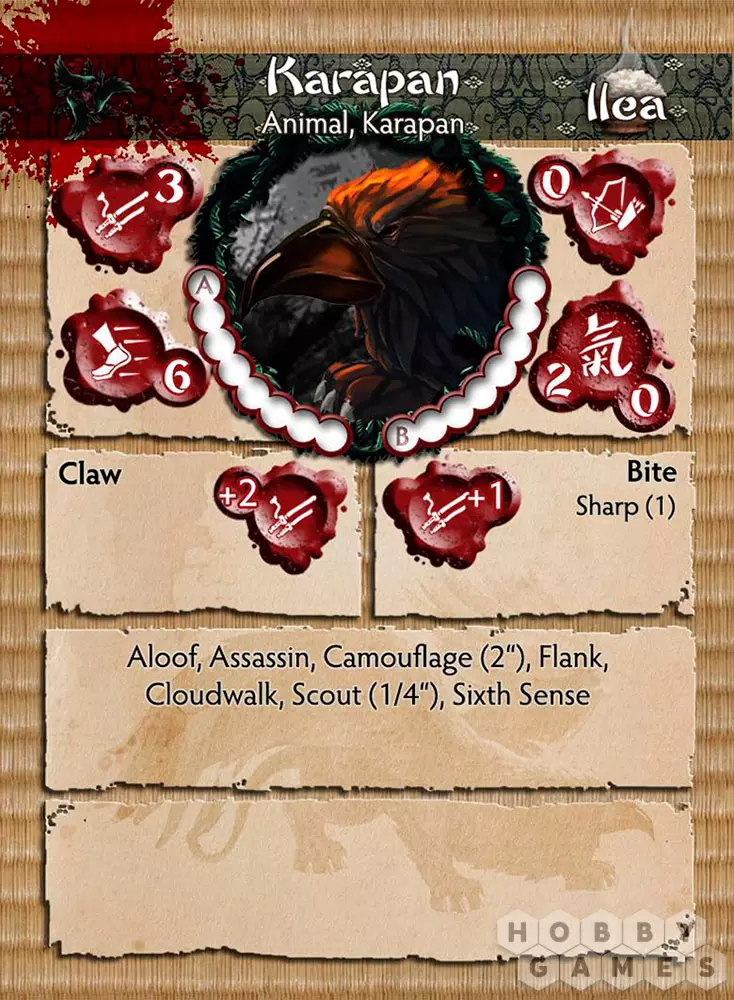 Выращиваемые поколениями, Karapan являются идеальным вьючным животным для Kage Kaze Zoku. Жизни многих Червей (Worms) были положены на алтарь тренировок и обучения каждого Karapan. Бесшумность и ловкость пантеры в сочетании с норовистой маневренностью ворона не оставит и шанса добыче. Для тех, на кого охотится этот зверь, не может быть защиты. Для тех, кто стремится скрыть свои намерения от Grand Master, не может быть укрытия.
