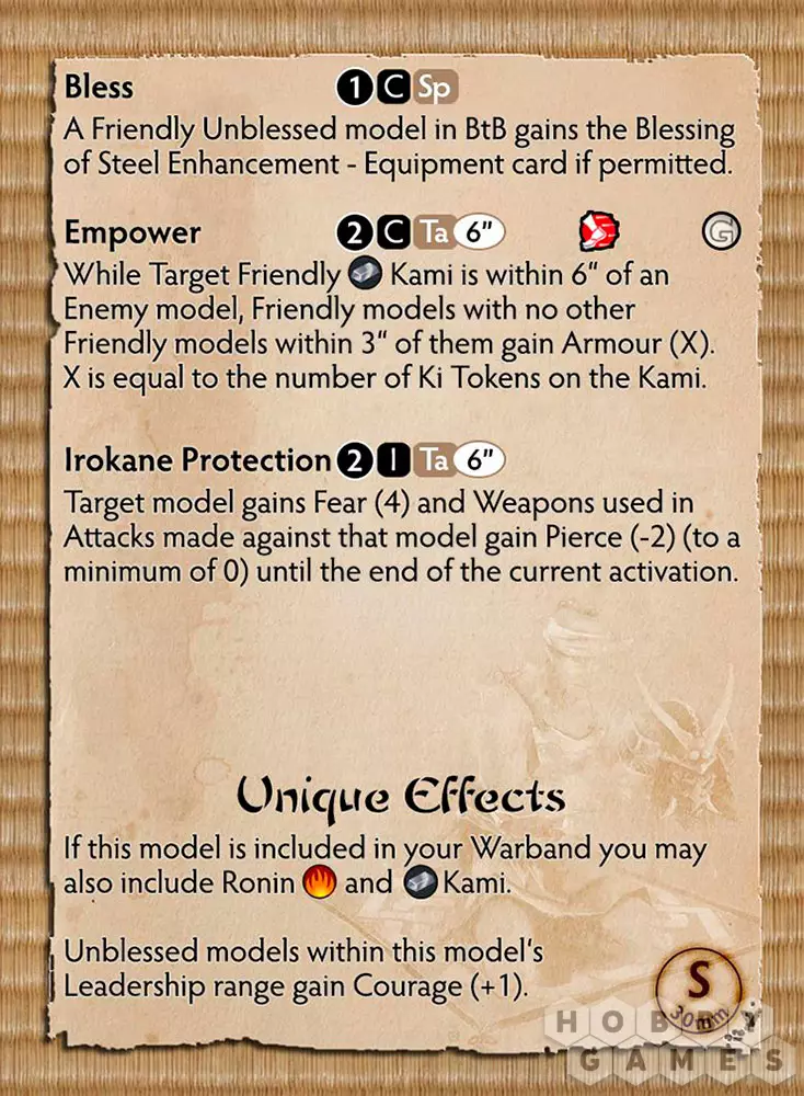 Навык Bless Ki Feat позволяет вам усилить unblessed модель прямо во время игры, а Irokane Protection бесценна как для самураев, так и для Ashigaru, когда у вашего противника есть колющее оружие, способное пробить броню. Но именно навык Empower Ki Feat открывает совершенно новый способ игры за фракцию, а в сочетании с лидерством и уникальным эффектом храбрости управление многими моделями без благословений вполне реально. Это также открывает возможности для других моделей, таких как Shugenja и небронированные медведи.