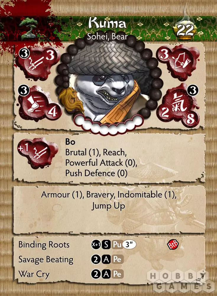 Kuma – это скала Храма, которую вода не точит. С помощью посоха бо или когтей он наносит быстрые и жёсткие удары по врагам. Несмотря на его массу, его трудно прижать к земле или превзойти численностью, и при умелой медитации Kuma может дотянуться до самых корней земли, чтобы связать и крепко удерживать тех, кто может его одолеть.