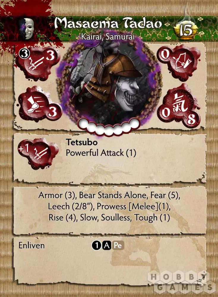 Tadao отличается от большинства Kairai. В бою он демонстрирует поразительную скорость и ловкость, нехарактерную для неуклюжих марионеток Культа. Говорят, что он выглядит почти живым. Tadao по-прежнему использует прочный стальной тэцубо, олицетворяющий его бывший клан, с мрачным удовлетворением ломая кости и сокрушая дух живых.