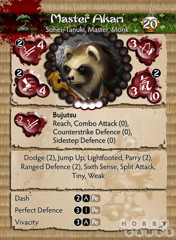 Неторопливый и вдумчивый в тренировках с учениками и настоящая буря на поле боя, Master Akari обрушивает шквал ударов на врагов переходя от одного противника к другому. В него практически невозможно попасть с расстояния, а потому врагам приходится приближаться к нему. Храм не отвергает никого, кто ставит нужды мира выше личной выгоды, и высоко ценит таких последователей, чему Master Akari и Kuma служат примерами.