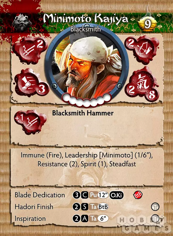 Kajiya может усилить отряд своими способностями и расширить ваш модельный ряд, поскольку он даёт доступ к Ronin Fire и Metal Kami. А the Sacred Katana, с которой поставляется этот блистер, обеспечивает отличное взаимодействие между Kajiya и его союзником.