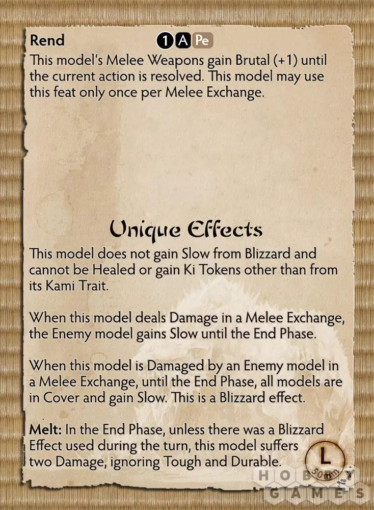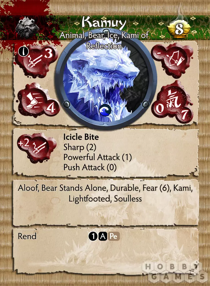Вместе с воинами Hoshi, что следуют на войну за своими союзниками из клана Minimoto, на врагов обрушивается и ярость самих гор. Ice-Witches способны призвать могущественного духа, воплощающего неистовство горной бури – слепящую стужу, неумолимую как сама смерть. Это Kamuy, дух, чей гнев обращает врагов в ледяные изваяния, а когти разрывают плоть с нечеловеческой силой. Лишь немногие воины осмеливаются встретиться с ним лицом к лицу – и ещё меньше остаются в живых, чтобы рассказать об этой схватке.