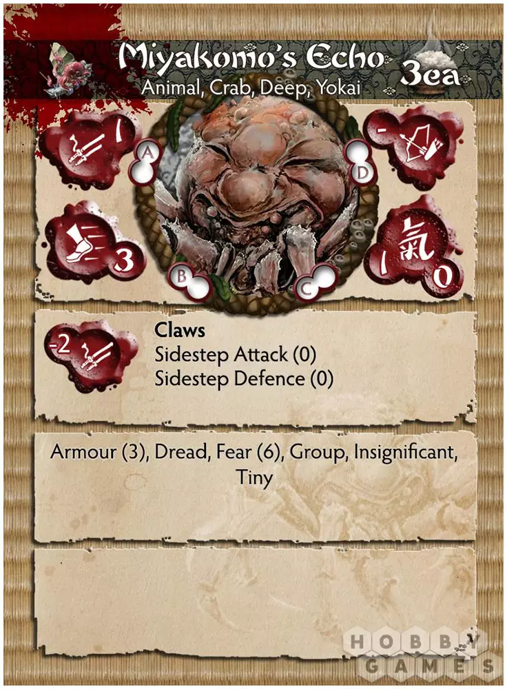 Эти зловещие духи с ракообразными чертами были призваны Miyakomo из таинственной бездны. Они стремительно несутся по палубе и берегу, словно предвестники хаоса и яростных сражений. Их грохот и неукротимая энергия наполняют воздух напряжением, заставляя врагов дрожать.