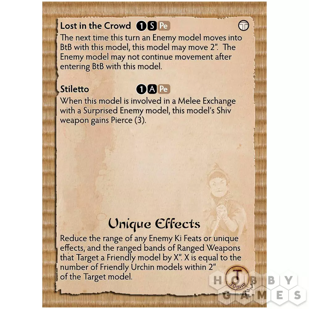 Игрокам Silvermoon просто необходимы такие Urchins. Nachin способен использовать Dash и Outmanoeuvre против своих противников, а Kibin обладает Lost in the Crowd и смертоносным Stiletto. Эти ловкие и незаметные персонажи могут эффективно проводить разведку и оказывать поддержку другим моделям.