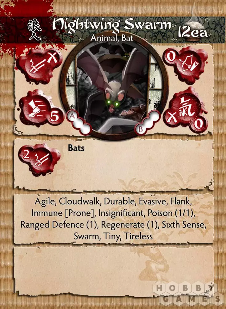 Тысяча пар красных глаз, горящих в темноте, тысяча клыков, жаждущих крови. У Wave и Council of Shadow’s Shugenja есть множество трюков в военной игре. Теперь они выпустили ночные крылья из их тёмных каменных клеток. Подобно саранче с кожистыми крыльями, они проносятся по сельской местности, пожирая тех, кому не повезло оказаться у них на пути, оставляя после себя только опустошённые высушенные оболочки как напоминание об их неутолимой жажде.