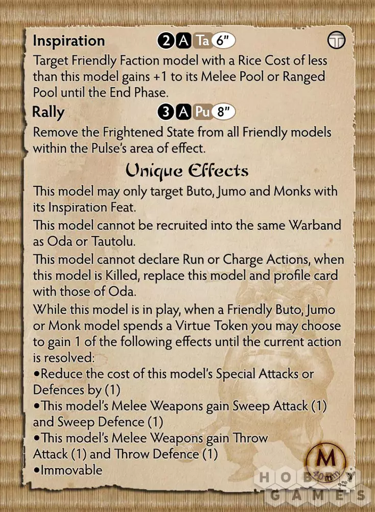 Легендарный сэнсэй Jumo и нынешний Oyabun Iron Fist gumi, Oda невысок только ростом. Больше всего на свете он любит тренировать Buto и превращать их в ходячее оружие из массы и мускулов. Хотя телосложение самого сэнсэя может помешать ему продемонстрировать обширные познания в искусстве Jumo, он умелый и расторопный учитель. Выкрикивая указания и направляя бойцов своим богато украшенным веером, Oda быстро превращает любителя в компетентного борца, а воина – в мастера.
