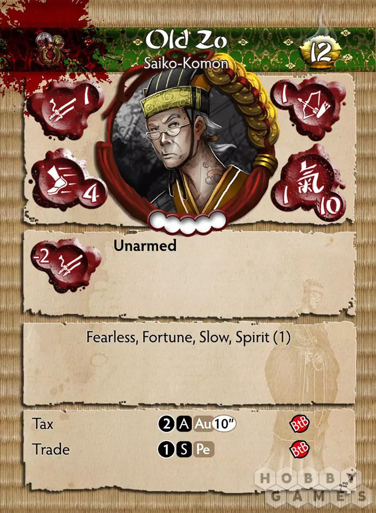 Сколько точно лет Zo, остается неизвестным, поскольку, кажется, что он служит the Gumis of the Silvermoon не одно десятилетие. Если годы и сказались на его теле, то они, конечно, не повлияли на его изощрённый ум. Ничто не ускользает от зорких глаз, выглядывающих из-за стёкол очков, ни один вариант развития событий не упущен и тщательно взвешен. Кажется, ничто не может поколебать этого уважаемого Saiko-Komon, поскольку он спокойно управляет ходом битвы, излучая ауру влияния, которая, кажется, высасывает искру и энергию из врагов, в то же время воодушевляет товарищей. Многие Oyabun чувствуют, что судьба благоволит им, когда Zo на их стороне.