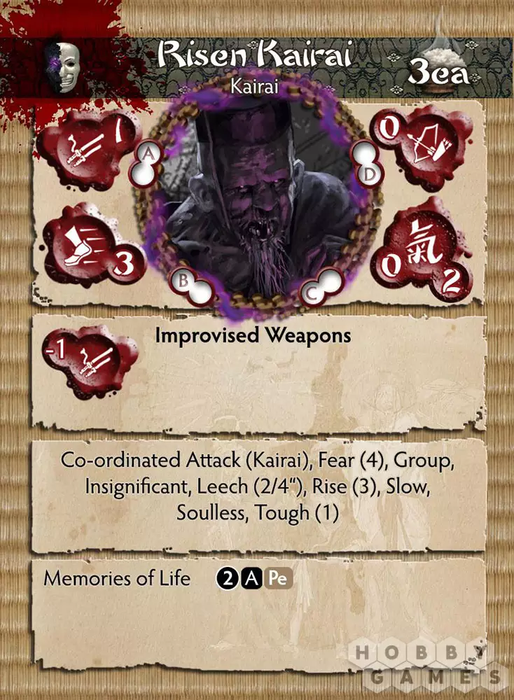 Восставших (The Risen) легко игнорировать: они медлительны, безмозглы и слабы. Но солдаты на островах Jwar понимают, что игнорировать их – рискованно. Окружая противников, они могут “взять количеством” даже намного превосходящего их воина. Крайне обескураживающе и изнурительно наносить смертельный удар противнику только для того, чтобы увидеть, как он восстает снова. Это настоящий инструмент Yurei и новая угроза живущим на островах…