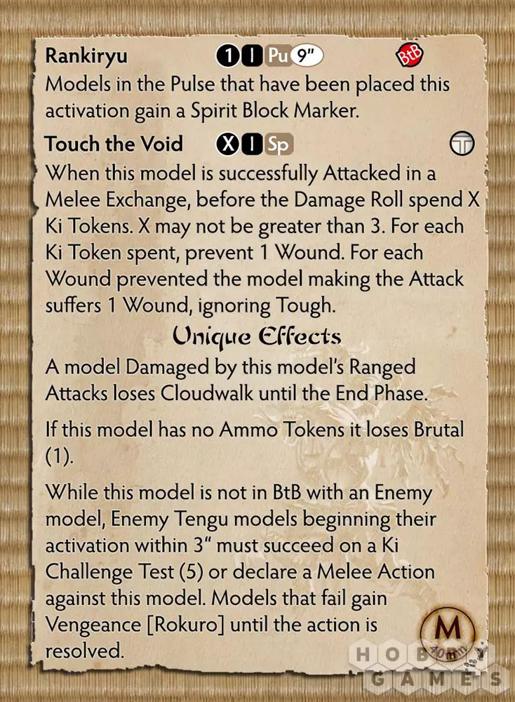 Никто не знает, за что Rokuro был наказан (некоторые даже говорят, что он сам отрезал себе крылья), но тот факт, что он усовершенствовал технику метания топоров в крылья своих врагов, свидетельствует о том, что он хочет, чтобы другие страдали так же, как и он. Даже самые стойкие и сдержанные Tengu могут прийти в ярость от одного его присутствия. В бою его сделка с Yurei отводит удары противника, одновременно наказывая противников за попытку причинить ему боль.