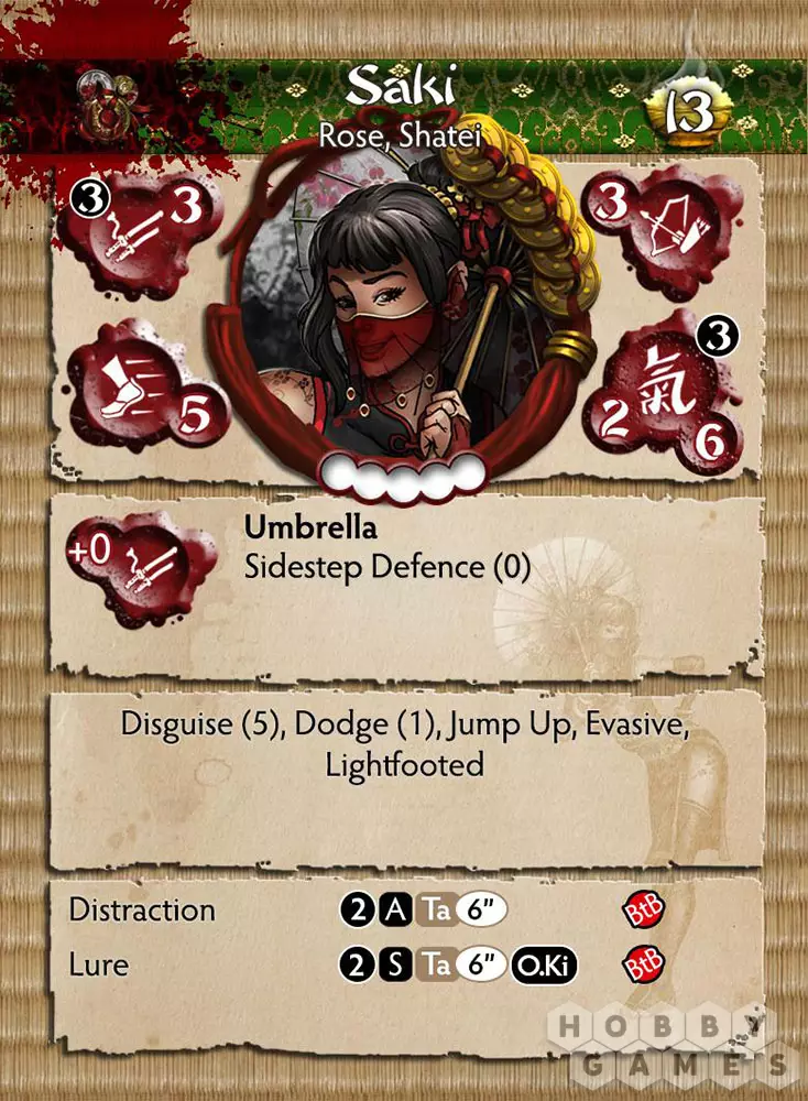 Сеть Jade Roses простирается далеко за пределы города Jima. Трудно найти человека, обладающего властью, который ни разу не поддался их очарованию. Никто точно не знает методов, которые использует каждая Jade Rose, и многие предполагают, что их харизма и манипулятивные способности сверхъестественны и являются результатом какого-то могущественного колдовства. Конечно, ни одна Rose никогда не раскроет эту тайну, настолько они преданы the Gumi. Saki – мастерица в искусстве внушения. Не произнося ни слова, она может привлечь внимание любого, кому не повезло попасться на её уловки, и он слепо побежит за ней в пылу битвы.