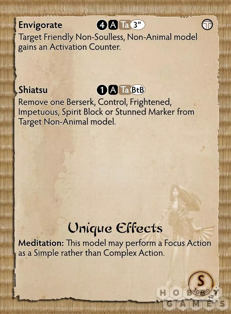 Её тренировки позволят ей медитировать для получения дополнительной Ki, чтобы ваши модели были свободны от маркеров и получали дополнительные активации. Однако она не очень хороша в ближнем бою, и её нужно будет защищать, чтобы она могла делать то, что у неё получается лучше всего.