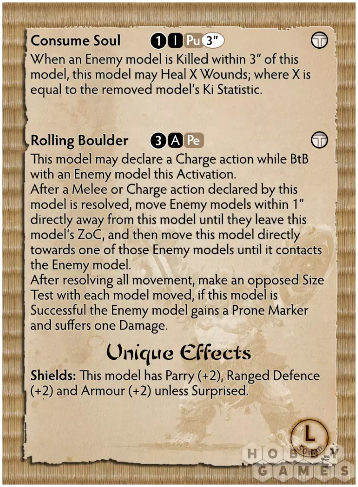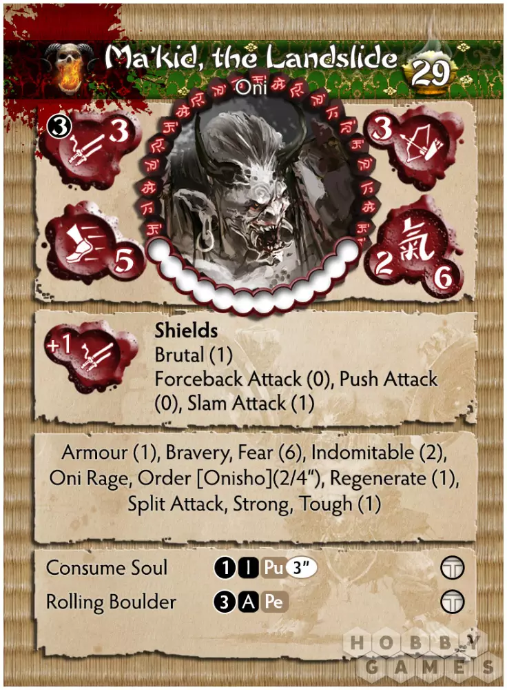 Ma’Kid – не просто сила природы, а неумолимая воля. Почти всегда он достигает своей цели, попутно перекраивая всё поле боя. Его движение сметает десятки фигур, отбрасывая их, лишая равновесия и сбивая с ног. Два массивных храмовых гонга, что он использует как щиты, даровали ему защиту, невиданную среди Они. А сочетание навыков Parry и Tough позволяет ему принимать на себя даже самые сокрушительные удары, оставаясь несокрушимой грозой на поле боя.