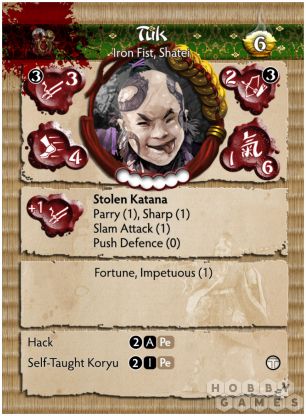 Дерзость Тука напрямую зависит от того, что именно плещется в его фляге в определённый день. Горячительная жидкость заставляет его действовать по собственному чутью, а не по приказам Silvermoon superiors. В один из дней, когда фляга с эссенцией беззрасудства была осушена до дна, он посягнул на легендарную и бесценную катану Moonfang, выкрав оружие у владельца-самурая Tanaka. С тех пор, отбиваясь от бесчисленных воинов, жаждущих вернуть клинок, Tuk на удивление быстро научился им владеть. И, вопреки всей своей безрассудности, в бою он преображается, становясь подлинным воплощением смерти, едва его серебристый клинок покидает ножны.