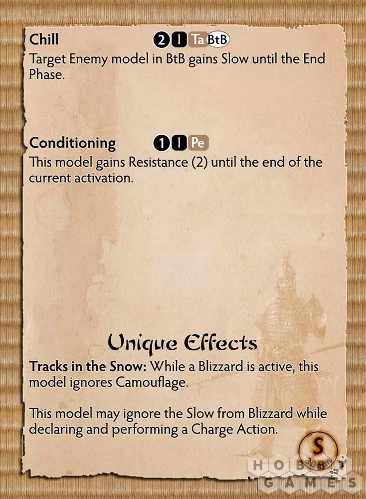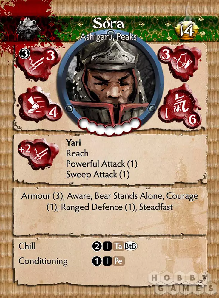 Семьи Hoshi и Minimoto настолько тесно переплетены, что почти стали единым целым. Многие дочери Hoshi спустились с ледяных вершин, чтобы выйти замуж за сыновей Minimoto. Точно так же многие Minimoto высоко поднимались, чтобы занять своё место в семье Hoshi. Sora – воплощение этого союза, воин, сочетающий черты обоих Домов. Благословение Медведя нашло отражение в его крупной фигуре и крепости духа, но именно кровь Hoshi позволяет ему противостоять свирепым ветрам и ледяным снегам, покрывающим вершины Iron Mountians. Хотя он все еще ashigaru, ему прочат службу в стража ледяных дев. Только лучшие получают эту должность, поскольку она означает жизнь в высокогорных районах, в суровых условиях штормовых ветров, снежных бурь и засухи, которые могут длиться днями и даже неделями. Sora вобрал в себя всё лучшее из своей родословной и стал известным воином снежной бури.