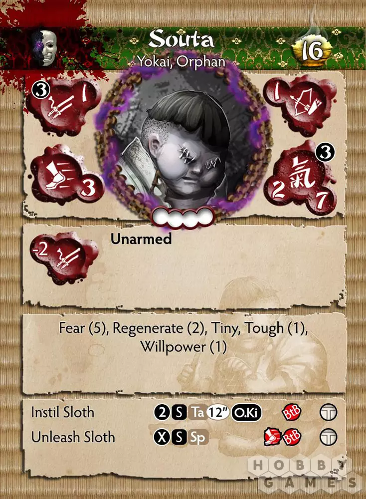 Из сирот, затерянных в пустоте, Souta является прекрасным примером физического проявления духа, сидящего внутри него, искажающего и развращающего своего носителя. Одни говорят, что дети уже были на пути к разрушению, другие – что они всего лишь невинные жертвы, погибшие, как и многие другие, в битве между добром и злом, между жизнью и смертью. Souta – воплощение Лени (Sloth), даже когда дух не призван. The Sloth такой же медлительный и неизбежный убийца, как и пустота, из которой он появился. Его жертвы беспомощно зажаты в тиски страха и не могут выбраться из невидимых пут, а те, у кого хватает смелости противостоять ужасу, оказываются окутанными его небытием.