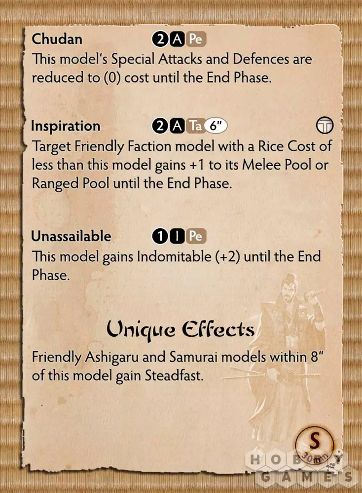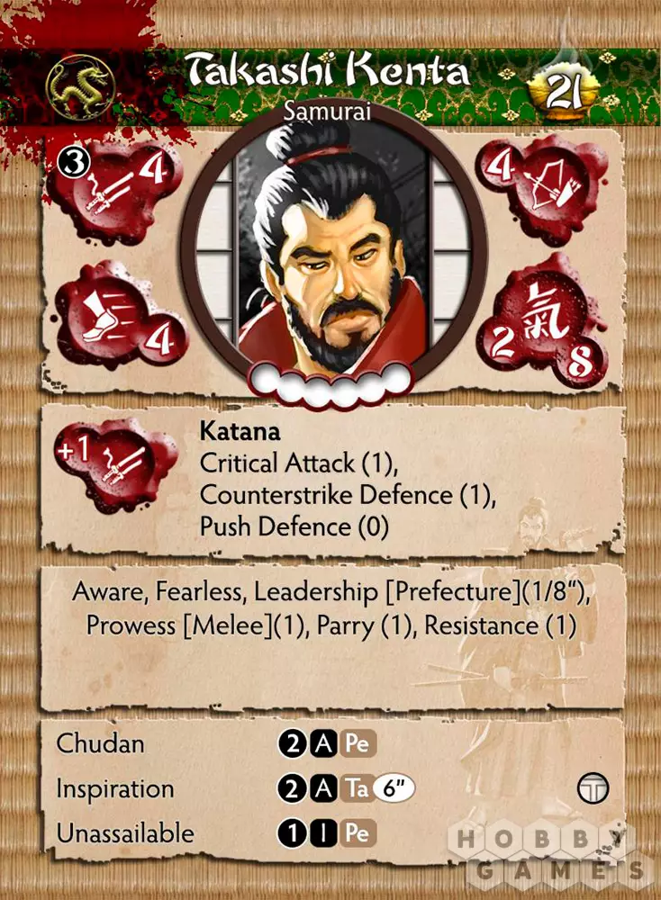 Kenta – настоящий самурай во всех смыслах этого слова. Ещё мальчиком он знал свой путь, по которому затем шёл долгое время, служа своей семье и имени Takashi. Ветеран бесчисленных сражений и кампаний, он – потрясающе ловкий мастер фехтования, и ни один враг не сможет обойти его с фланга. Часто враги по глупости думали, что нанесли смертельный удар, но предки высоко ценят своего потомка и предпочитают его всем остальным. Присутствие Kenta в бою прогоняет всякий страх в войсках, укрепляя сердца воинов и вдохновляя их на победы.
