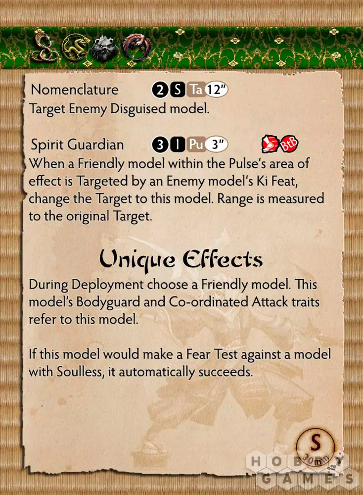 Модель Tenchi можно использовать в составе боевого отряда, связанного со следующими фракциями: