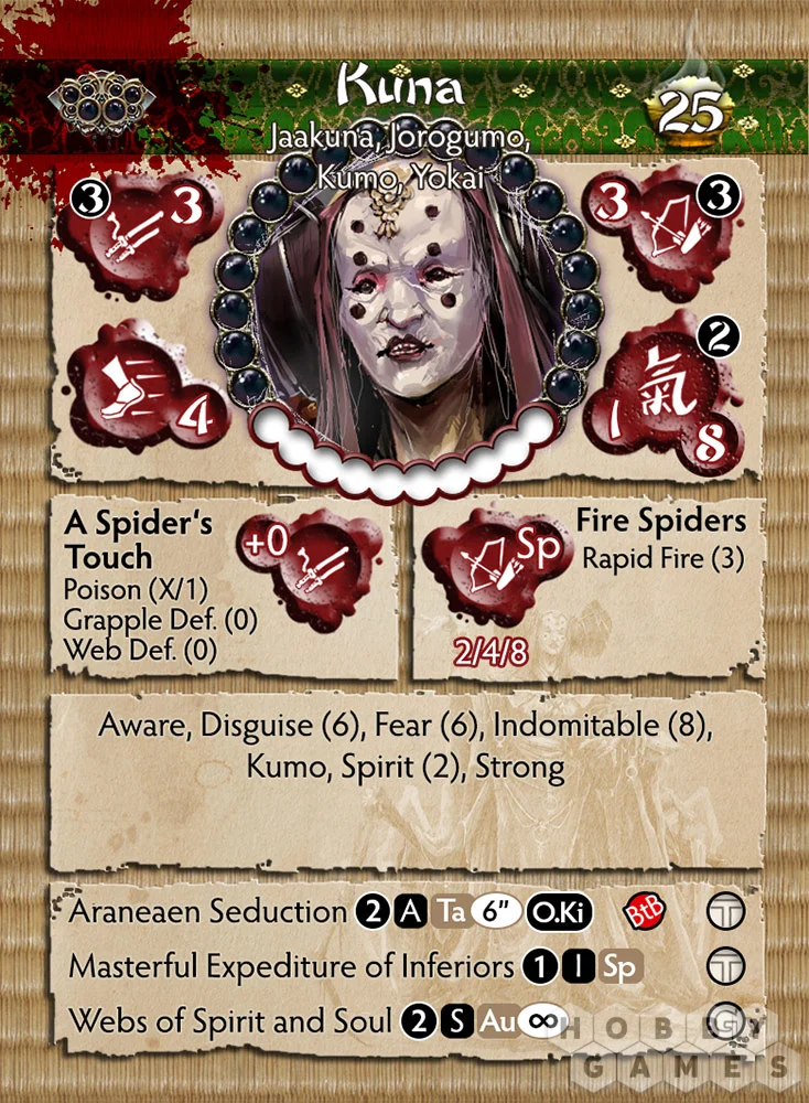 Судьба Kuna намертво сплетена с судьбой всего её рода. Вместе они становятся живым кошмаром для любого, кто осмелится встать у них на пути. Её красота жуткая, но гипнотическая – проникает в разум, лишая воли одного взглядом. А затем в ход идёт главное оружие: смертоносный поцелуй, чей яд растекается по венам жертвы, принося агонию и страдания. Те же, кому посчастливилось (или не посчастливилось) выжить, обретают истинное "освобождение" – их разум навсегда очищается от иллюзий, и они вливаются в вечно растущий выводок...