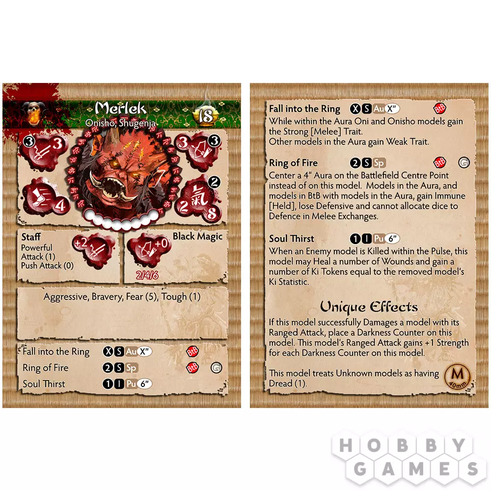 Merlek – могущественный Onisho Shugenja, вокруг которого бой буквально начинает гореть. Его миниатюра сразу притягивает взгляд – массивная фигура и пылающий посох создают ощущение существа, которое не просто сражается, а навязывает противнику собственные правила. Merlek действует как центр притяжения для схватки, стягивая врагов ближе и превращая пространство вокруг себя в опасную зону, где выживает не каждый.