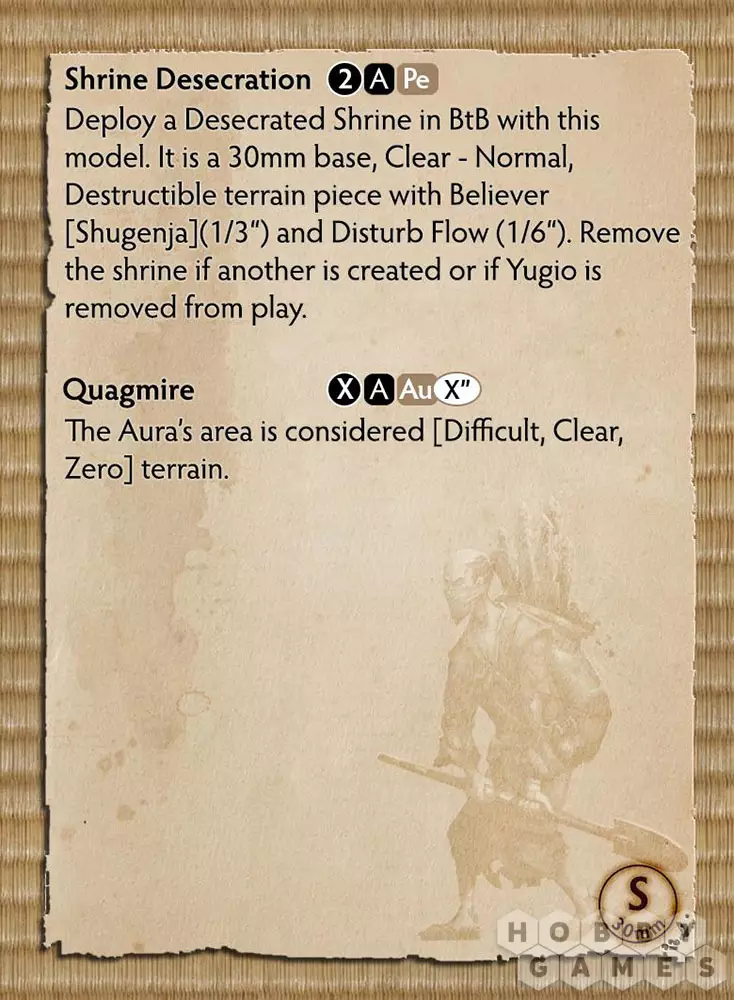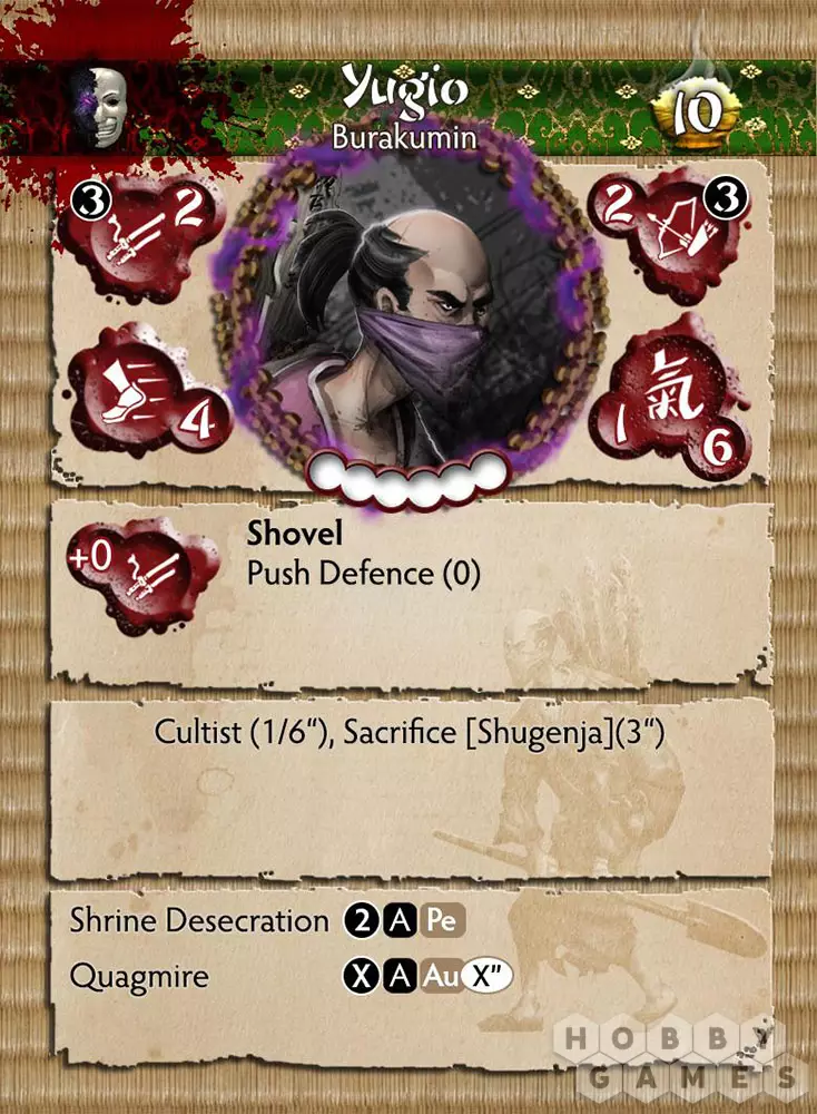 Yugio – некогда благочестивый и преданный крестьянин, ухаживающий за кладбищами своей деревни. Но долгие дни, проведённые в одиночестве под шёпот предков постепенно изменили его убеждения, сделали их мерзкими и нечестивыми. Yugio не подозревал, что голоса, которые, как он верил, были голосами его предков, на самом деле принадлежали Yurei. Теперь он – сломленная и обезумевшая тень прежнего себя, ещё одна марионетка, подчиняющаяся воле тёмного и безжалостного мастера, а его прежние учения искажены в угоду the Shugenja Культа. The Shoymo научил его защищать души его предков, которые теперь обратились против своего народа.