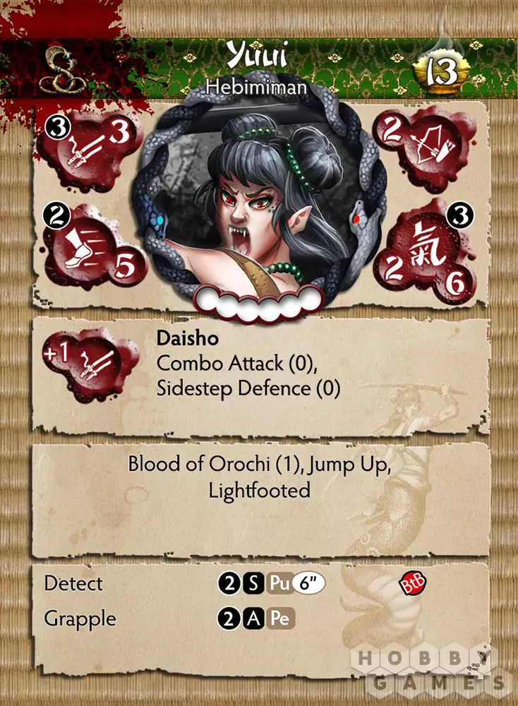 Еще одна дочь Orochi, свирепая воительница, одарённая великой доблестью в бою и змеиным телом. Она скользит по полю боя, выслеживая трусов в тени и расправляясь с ними во имя Orochi. Несмотря на то, что Yuui не принадлежит к роду Ito, она росла и крепла в рядах последователей Orochi, и это не осталось незамеченным для многих Ito, которые по происхождению должны были быть выше её по званию.