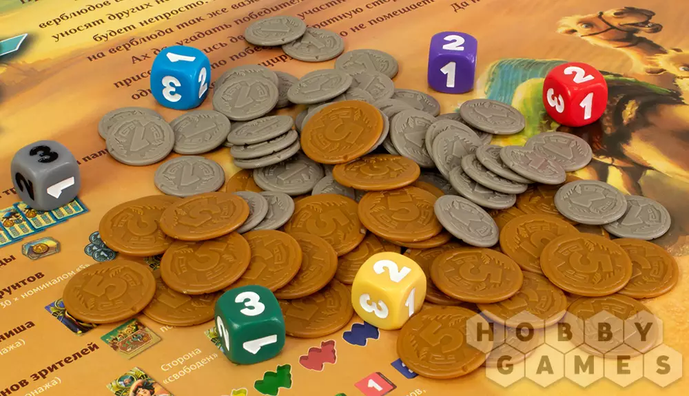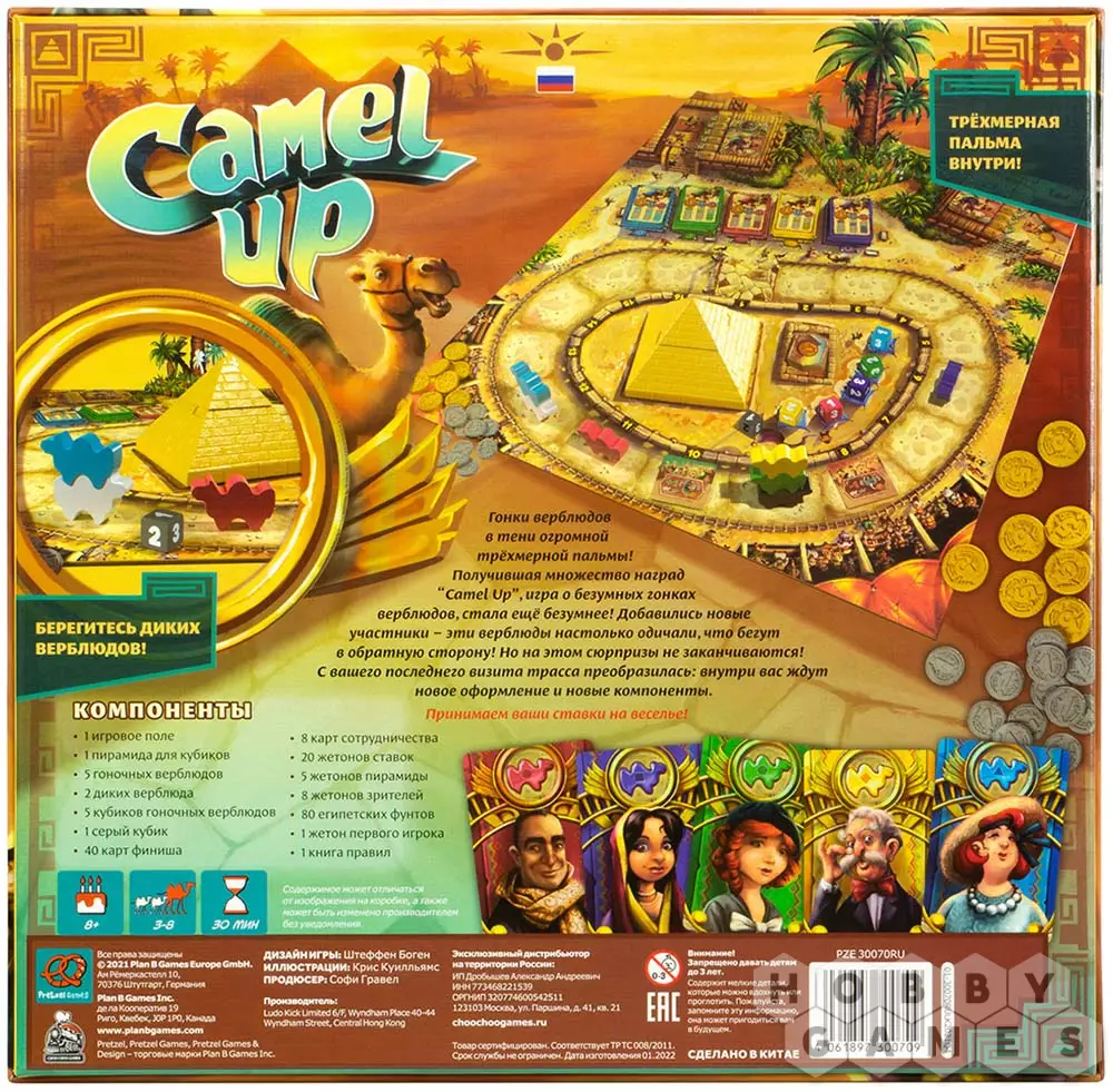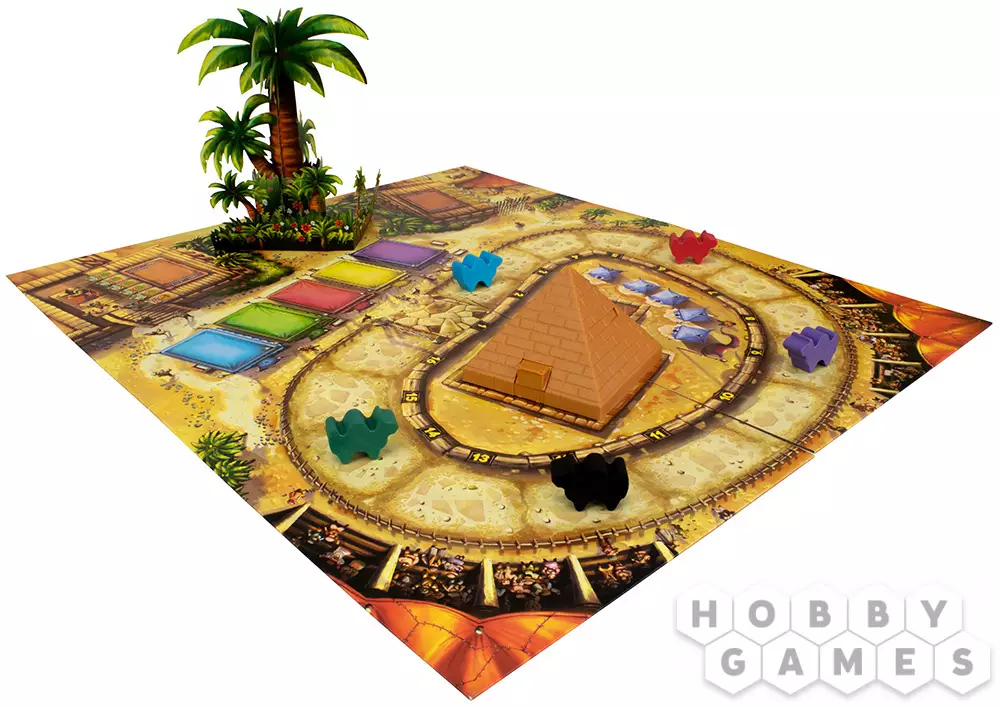 Фалькова09.09.2024 10:37Очень нравится игра. Механизм выбрасывания кубика из пирамиды, само поле с пальмами, все очень красочно и нарядно. Фигурки верблюдов вообще шик, очень тактильно приятные. Основа на рандоме, да, но все равно не похоже на лото - игроки зарабатывают очки не бросками кубика, а своими ставками на исход раунда и забега. Интересно и детям и взрослым компаниям.
