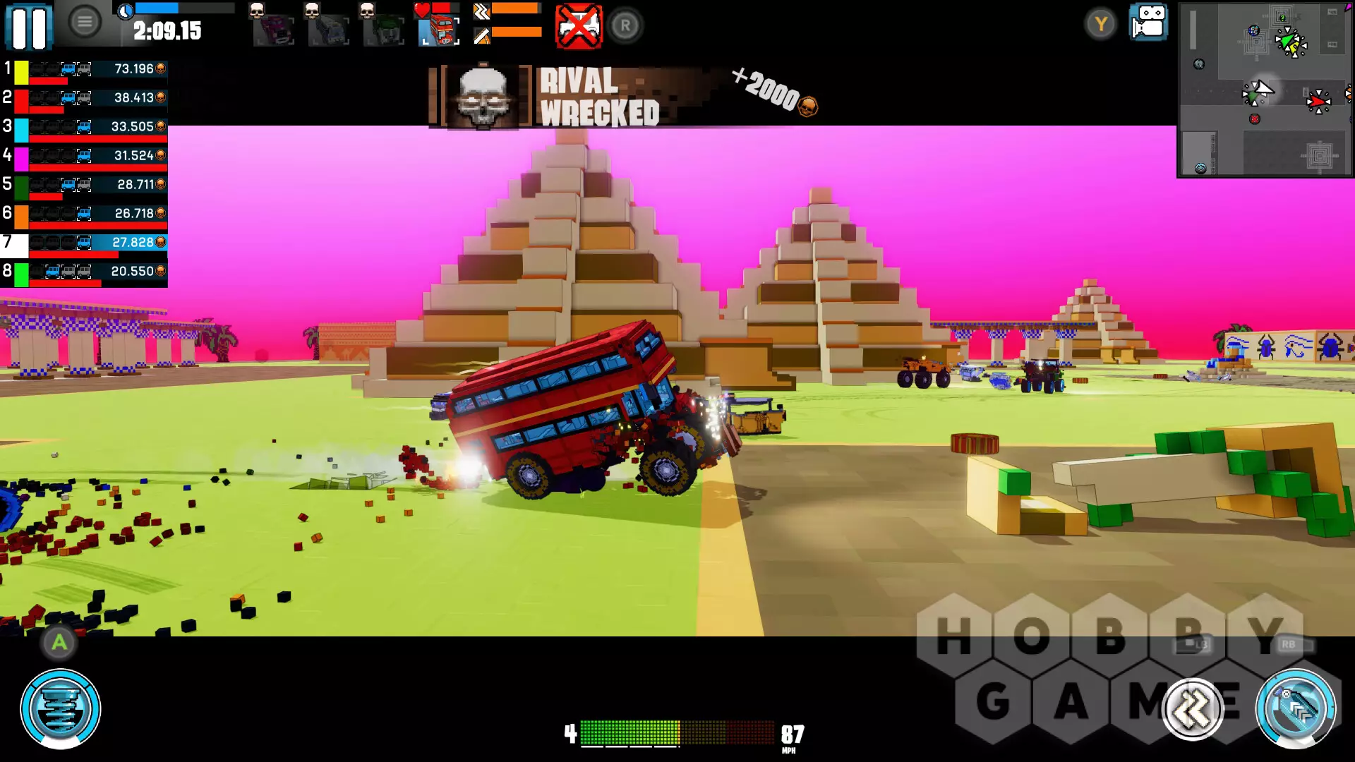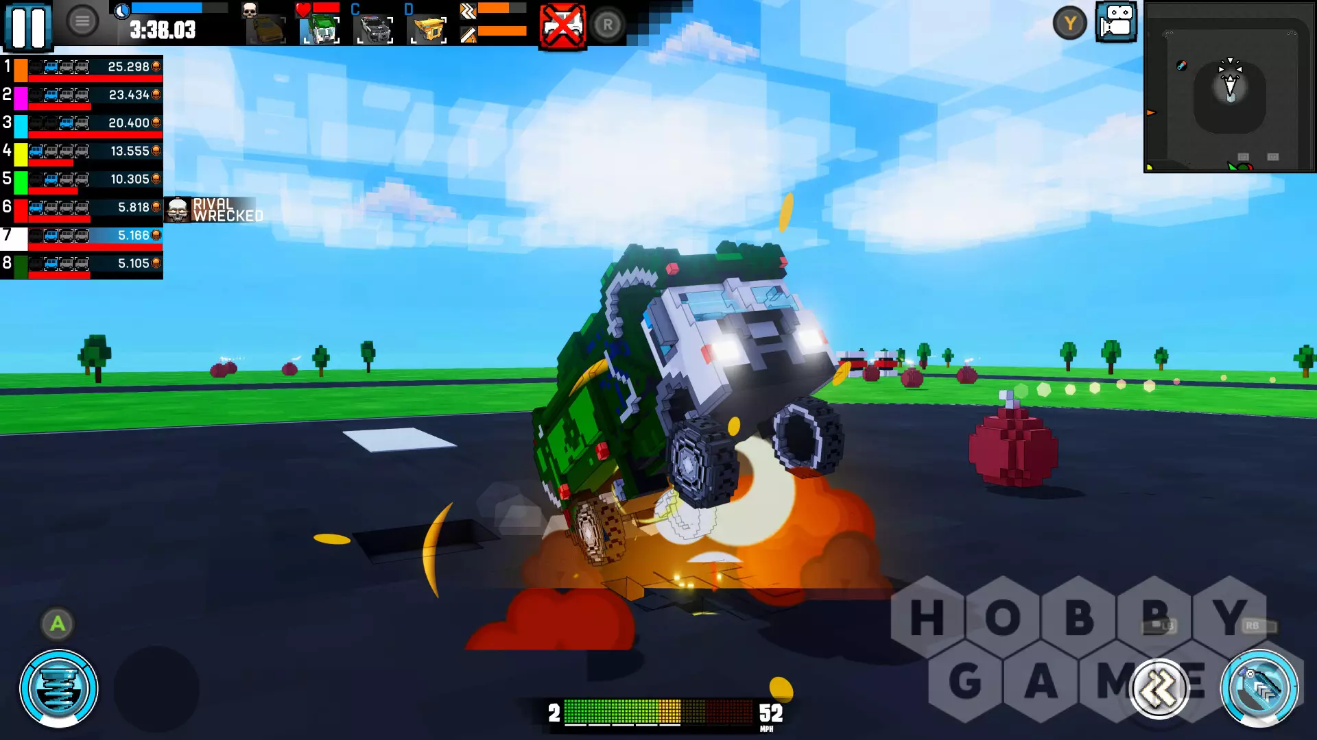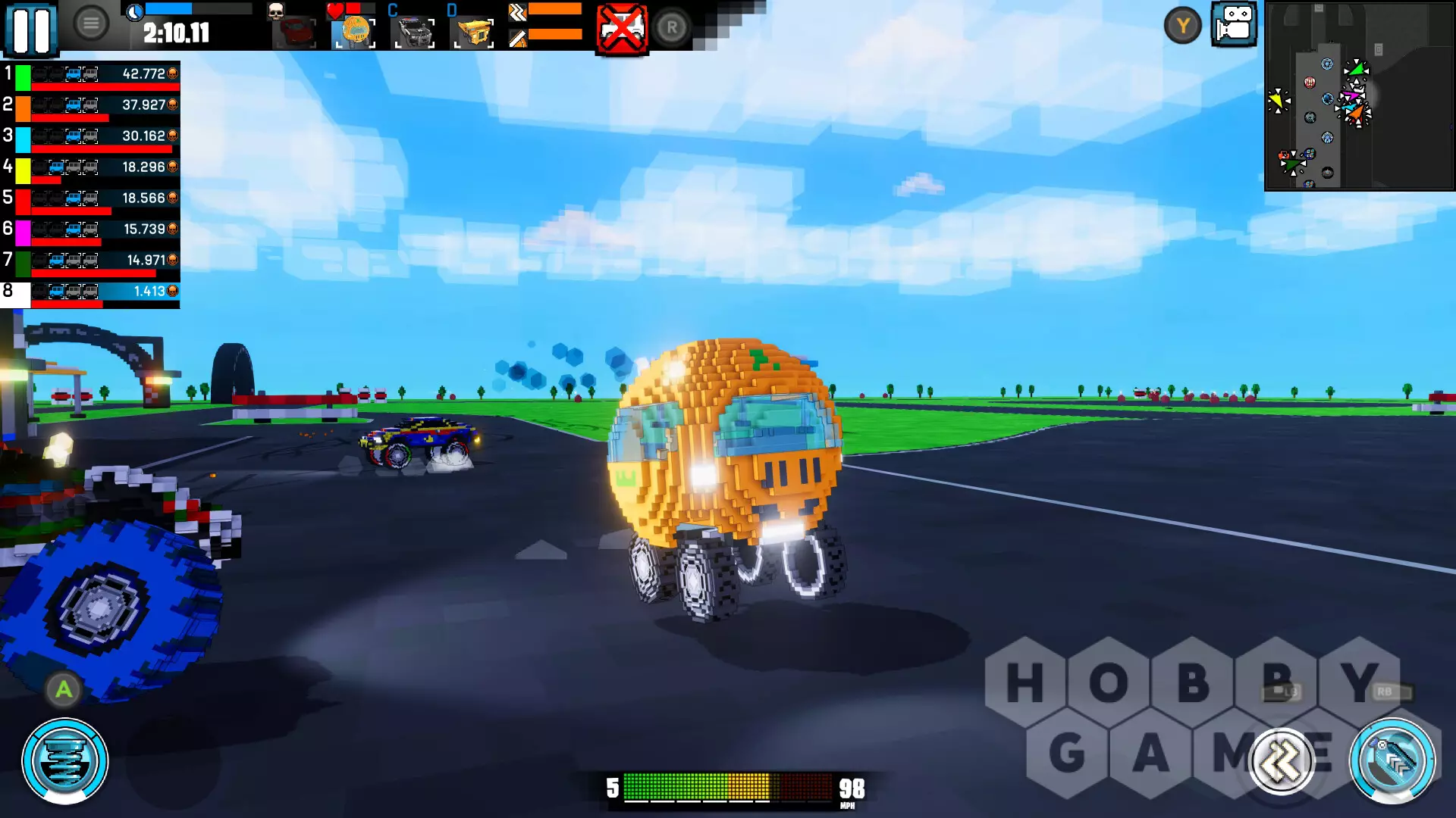 Игра предлагает множество различных режимов. В Death Match вы сражаетесь против других автомобилей и получаете очки за их уничтожение. В Racing вы участвуете в гонке против пяти соперников. Survival — это бой в стиле «королевской битвы», где побеждает последний выживший. В Score Battle нужно собирать предметы, чтобы заработать очки. А в Freedrive вы можете свободно исследовать карты в удобном для себя темпе.