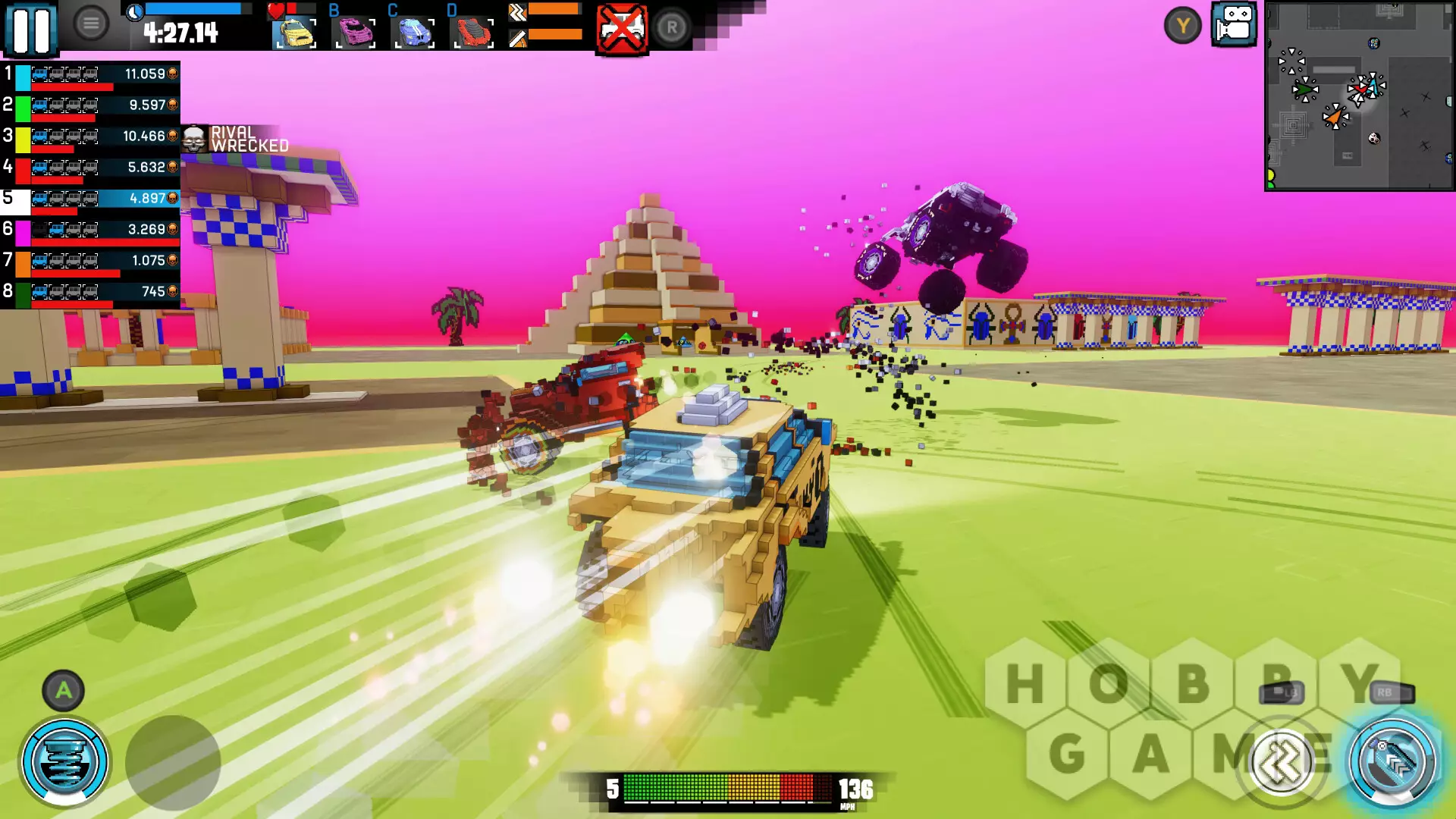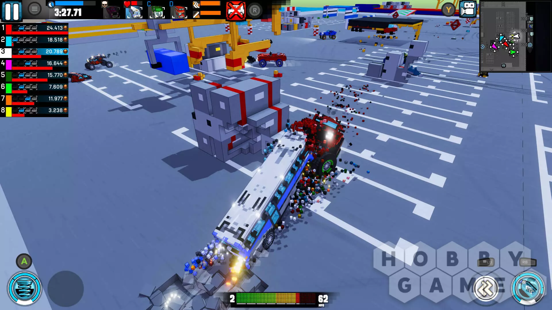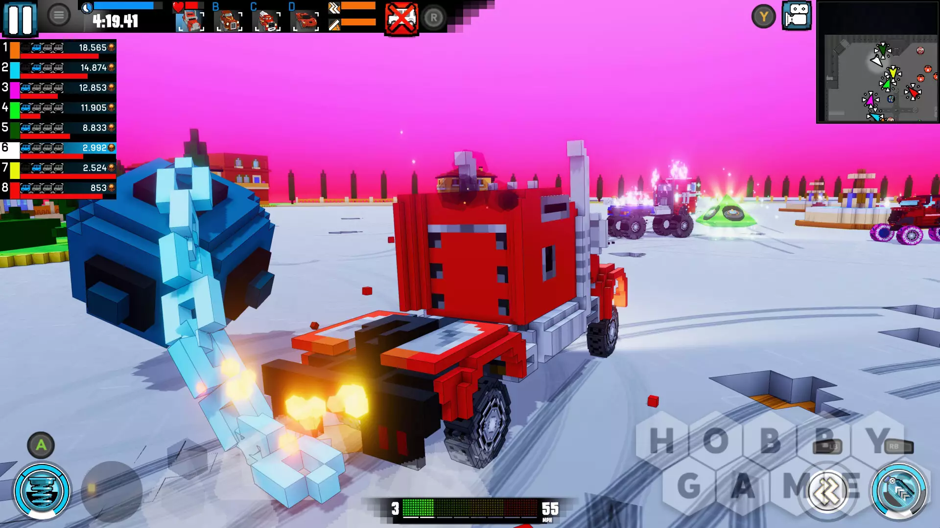 Игра предлагает множество различных режимов. В Death Match вы сражаетесь против других автомобилей и получаете очки за их уничтожение. В Racing вы участвуете в гонке против пяти соперников. Survival — это бой в стиле «королевской битвы», где побеждает последний выживший. В Score Battle нужно собирать предметы, чтобы заработать очки. А в Freedrive вы можете свободно исследовать карты в удобном для себя темпе.
