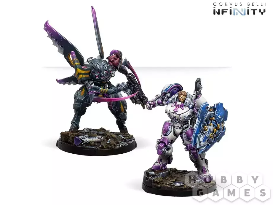 В этот набор входят две фигурки из термопластика, а также две уникальные сцены битвы. Maximus с точной винтовкой Marksman и Caskuda с Combi Rifle (AP). Две потрясающие фигурки, которые станут отличным дополнением ваших армий ALEPH, PanOceania или Combined Army.