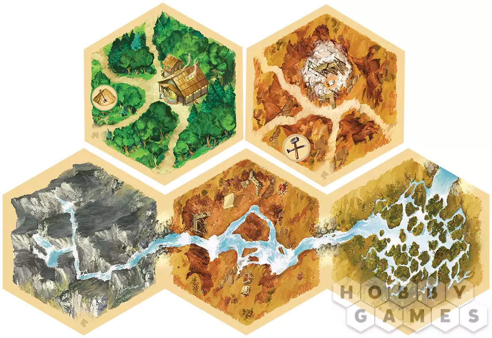 Все игроки, чьи Поселения соприкасаются с таким гексом, получат с него 1 карту соответствующего ресурса