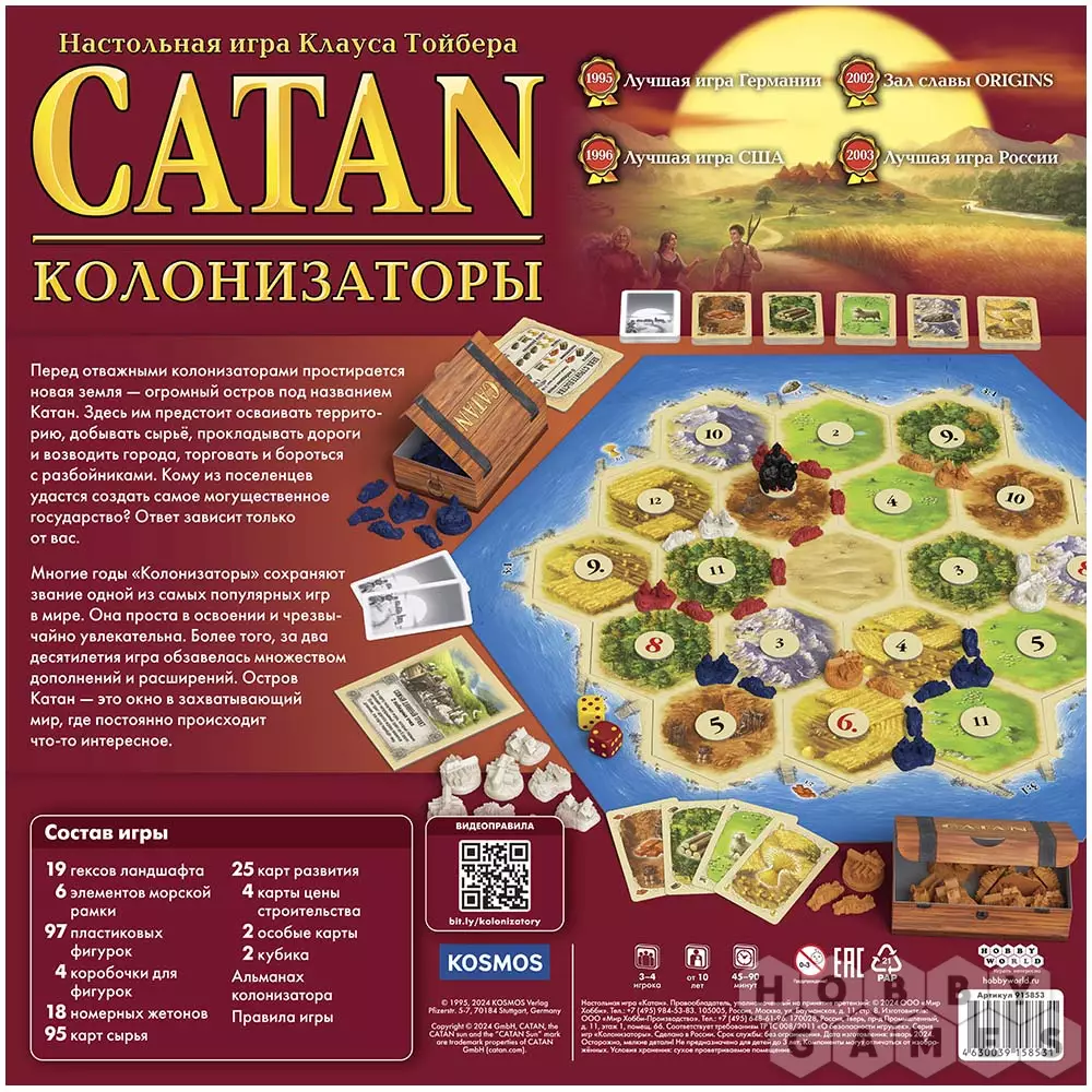 Серия "Колонизаторы" – одна из самых известных, интересных и оригинальных семейных настольных игр в мире. Всемирную известность она получила ещё в далёком 1995 году, когда получила престижную премию Spiel des Jahres. С тех пор игра занимает своё место на домашних полках и в сердцах миллионов любителей настольных игр. Игра послужила прообразом известнейшей компьютерной игры Settlers и породила массу продолжений в настольном формате.