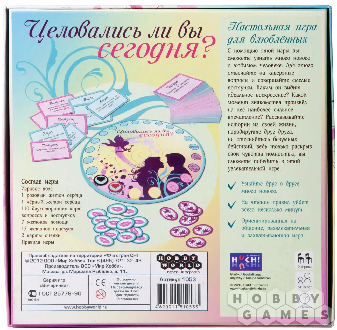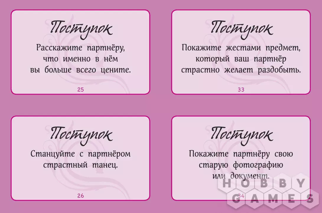 Zuich19.02.2013 20:34Забрала сегодня) На тему содержания карточек. Игра не надоест, потому что вопросов там очень много и большинство из них актуальны всегда.. например "Что меня обрадовало за последнюю неделю?". Тоесть, внутри коробки подбор несложных, но очень хороших вопросов, ответив на которые вы сможите лучше понять и узнать друг о друге много нового. А самое главное, кроме набора вопросов, есть ряд несложных, но очень класных заданий для того, чтобы провести приятно время со своей половинкой. Мне кажется, такая игра сможет помочь как освежить, так и укрепить отношения пары. Кстати, отличный подарок как для себя, так и для друзей.