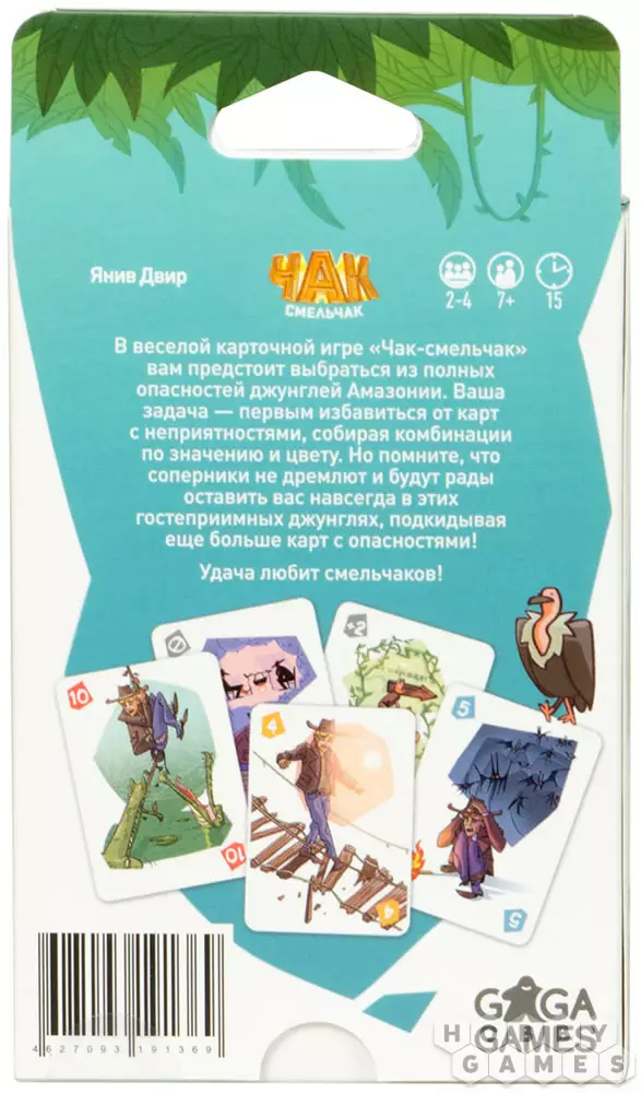 Эта быстрая карточная игра порадует вас весёлыми иллюстрациями, простыми правилами, и захватывающей игровой механикой. Всё что требуется – избавиться от всех своих карт, не набрав при этом больше пяти штрафных очков. Составляйте различные комбинации, используйте хитрую систему добора и, конечно же, спасайте Чака из всевозможных опасных ловушек!