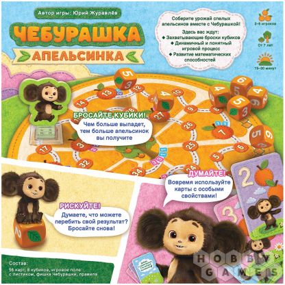 Яркое и красочное игровое поле с узнаваемым персонажем создаёт по-настоящему летнее настроение, а простые правила позволяют сразу же окунуться в веселье. "Чебурашка: Апельсинка" – это не просто игра, это тёплая и добрая история, которая подарит массу положительных эмоций и детям, и взрослым!