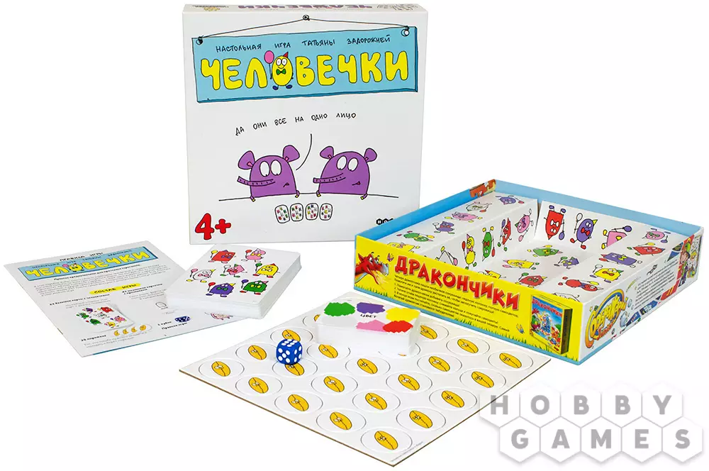 Существует немалое количество различной продукции с изображением добрых иллюстраций художницы – от календарей и блокнотов до футболок и кружек. И вот вы держите в руках долгожданную настольную игру "Человечки", которая обязательно порадует каждого своим ярким оформлением.