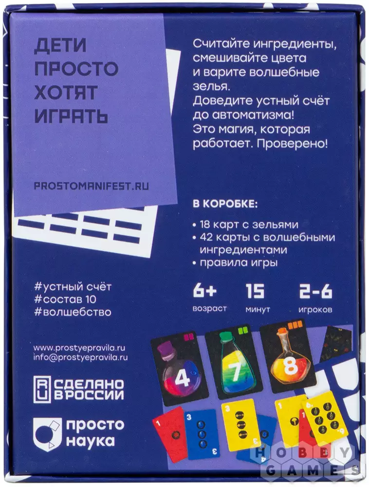 В настольной игре "Числиус" вы будете варить магические зелья, смешивая ингредиента по цветам и числам. Игра отлично развивает устный счёт, и поэтому подходит в качестве развивающей игры самым юным любителям магии и волшебства!