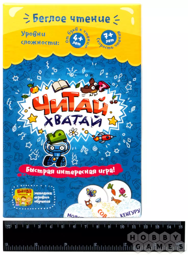 Просто знать буквы – это ещё не значит уметь читать! В "Читай-хватай" дети быстро и с удовольствием научатся складывать из букв слова: кто быстрее читает – тот больше собирает. Игра устроена так, что игровой процесс автоматически стимулирует детей читать и повышать скорость чтения.