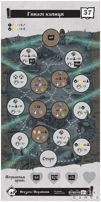 Ночь – этап обновления: вы сбрасываете карты невыполненных просьб и берёте новые, оцениваете отношение местных к вам, а также сталкиваетесь со своими внутренними бесами. Проиграете – и возьмёте плюс один грех на душу, эффект которого обязательно даст о себе знать позднее.