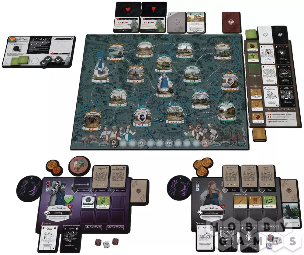 Также в дополнении вы найдёте карты проказней, новых персонажей, жетоны пароходов и двусторонний жетон сложности для тех, кто ищет настоящий вызов. Погрузитесь в мрачный фольклор Прикамья с совершенно новыми игровыми возможностями!