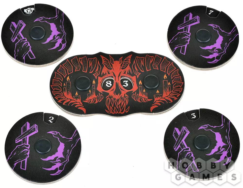 - Планшеты, счётчики грехов, жетоны, стенды и другие компоненты для 4 персонажей