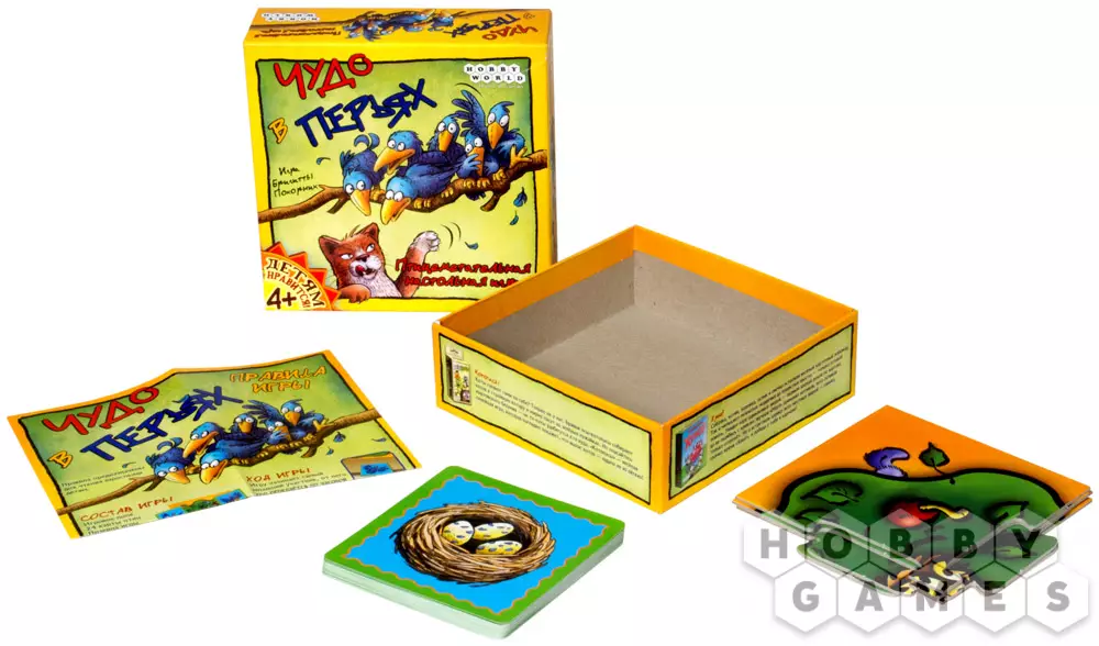 Настольная игра "Чудо в перьях" — это озорная детская игра для 2-4 игроков, в которой вам в прямом смысле придётся забрасывать птиц на крону дерева. С помощью этой игры вы определите самого ловкого в вашей дружной компании, а простые правила и занимательный геймплей будут интересны и понятны не только детям от четырёх лет, но и их родителям!