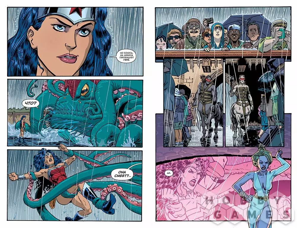 Параллельно с нашим миром, у богов Олимпа бушуют собственные скандалы и интриги. В то время как Аполлон желает попасть на пустующий трон Зевса, разгорается нешуточный конфликт, в центре которого, кстати, оказывается и наша Диана. А вместе с ней и тайна, открыв которую, она разрушит свой мир. Как только откроется правда об истинном происхождении Чудо-Женщины, прольётся немало крови...