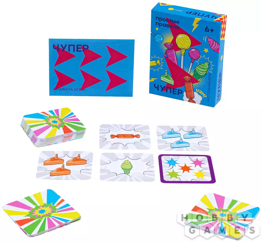 Кто сказал, что сладости вредны? В настольной игре "Чупер" они принесут множество положительных эмоций, а также активизируют ваше внимание и реакцию. Цель игры – в конце раунда остаться с большим количеством карт. Перед началом игры необходимо подготовить карты и выбрать ведущего. Он выкладывает карты по очереди, а задача участников – первым среагировать на одинаковое свойство на картинках и произнести его вслух. Карты могут объединять цвета, количества и всё, что угодно вашей фантазии. Однако есть нюансы: в колоде присутствуют "вредные карты", которые усложнят процесс игры, а также штрафы. Необходимо быть внимательным и не называть свойства, которых нет в раскладке, иначе придётся вернуть свою карту обратно. Как только вы видите совпадение на трёх картах, немедленно забирайте себе вкусность. Победит самый внимательный сладкоежка!