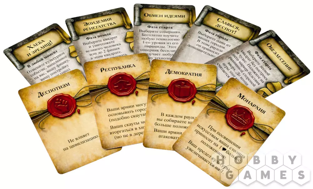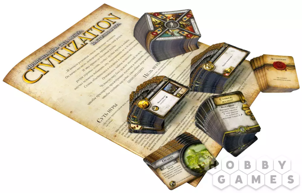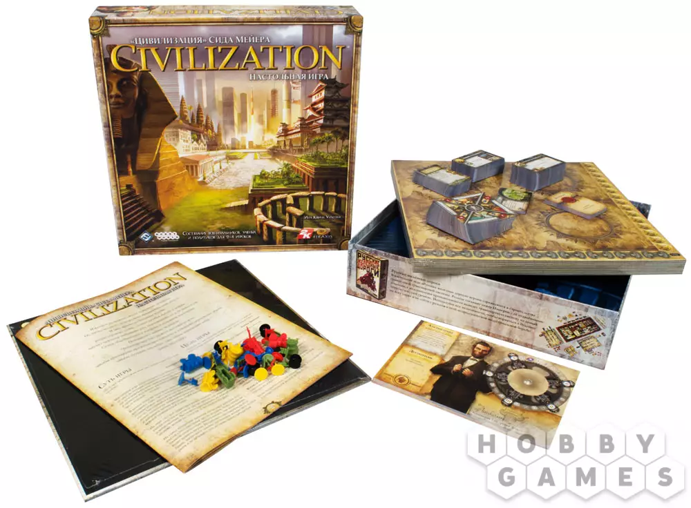 Поклонники оригинальной серии видеоигр Сида Мейера найдут много знакомого, ведь настольный вариант остался верен основным принципам, хотя и преподносит совершенно уникальный игровой опыт – Вы сможете наблюдать, как маленький народ строит несокрушимую империю. Игроки в начале игры, имея всего один город, одну единицу армии и одного разведчика должны пройти сквозь века и стать величайшей цивилизацией в мире. Создайте свою империю и выдержите испытание временем с использованием инновационных механик игры с несколькими путями к победе!