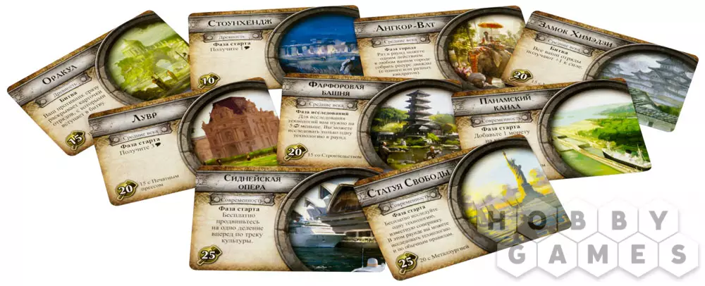 - 6 маркеров уровня культуры (по 1 на цивилизацию)
