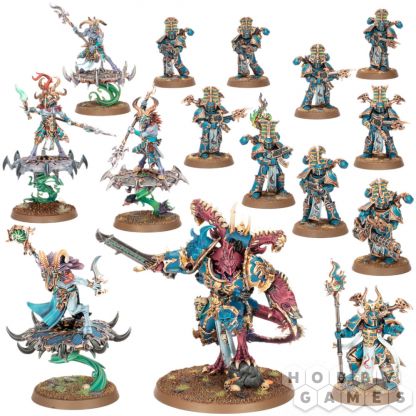 Combat Patrol: Thousand Sons – это готовый боевой отряд, наполненный мистикой и огнём варпа. В центре внимания Задофон – чудовищный демон-принц, чьи ритуалы меняют само полотно судьбы в угоду коварному Тзинчу. Его поддерживает шаман-тзаангоров, насылающий шквал псионических ударов, а также трое избранных тзаангоров, готовых сражаться в ближнем бою или обрушить стрелы судьбы с небес. Линию удерживают 10 рубриков, обречённых вечно нести пламя на поля сражений.