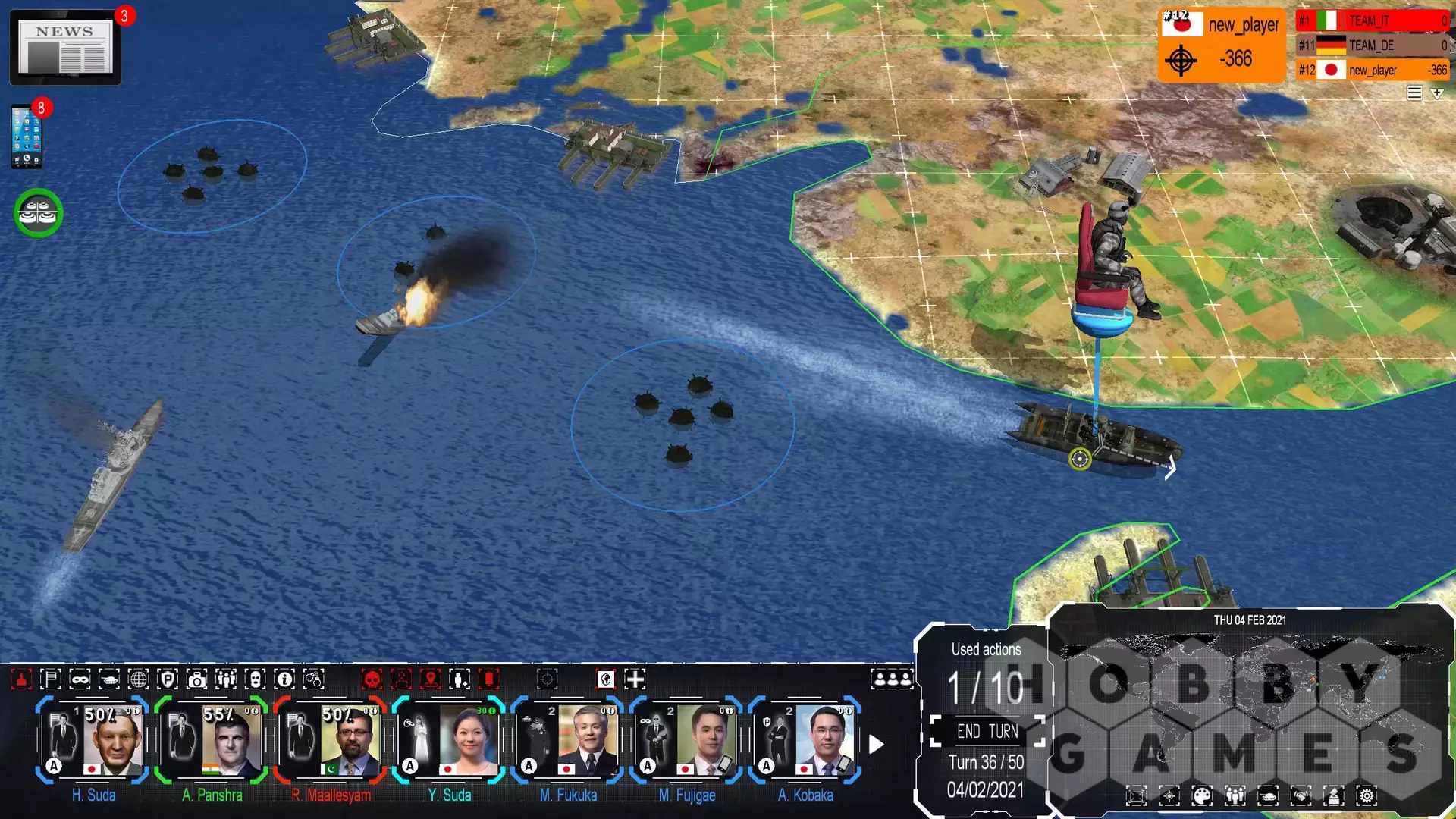 - закладка минного поля как на суше, так и на море; применение вертолета «Зодиак» на любой территории для нанесения урона войскам;